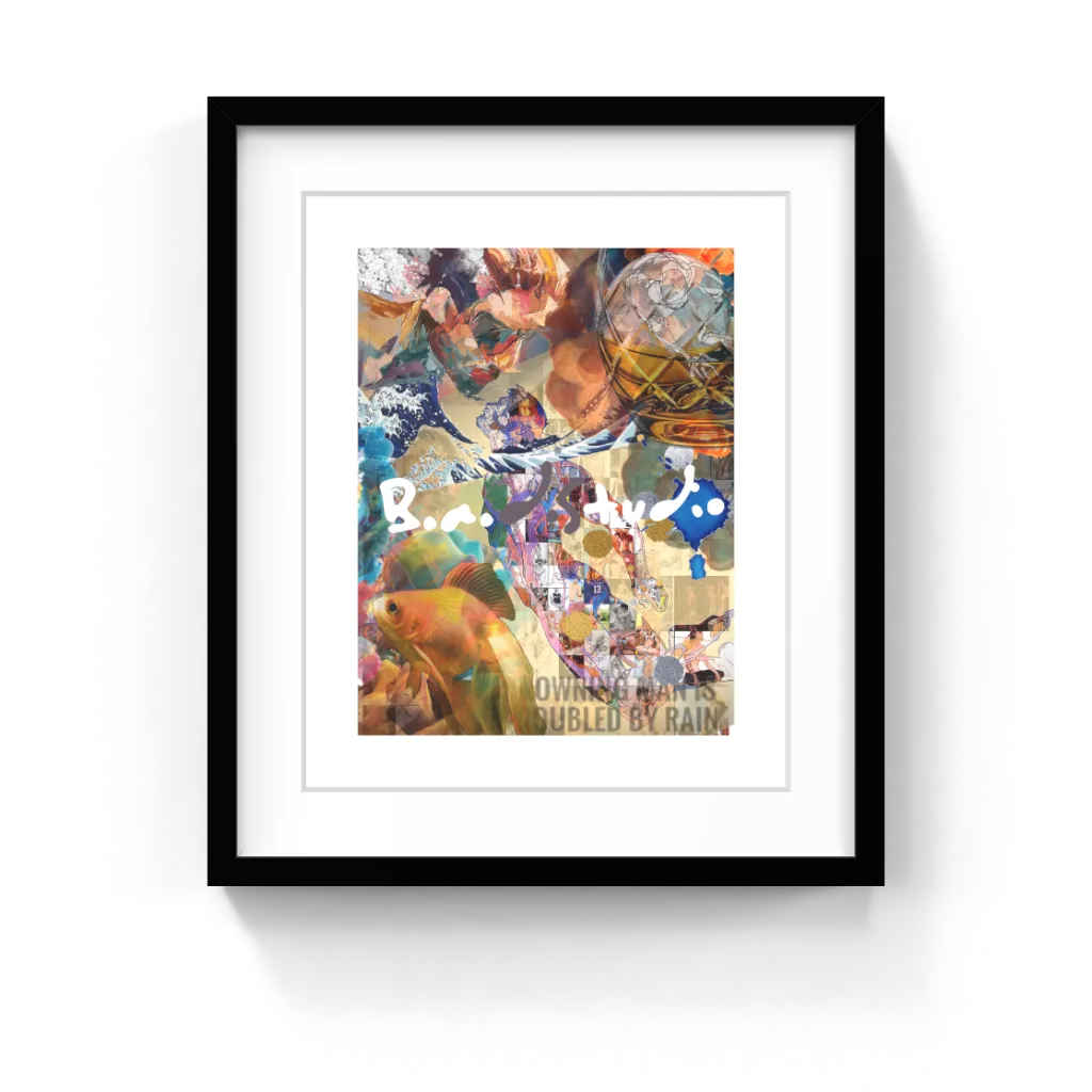 In the current art market, there is a growing appreciation for mixed media and collage works that convey complex narratives. "Drowning Man" fits well within this trend, appealing to collectors who value both aesthetic beauty and conceptual depth. The playful yet serious themes resonate with a diverse audience, increasing its marketability.